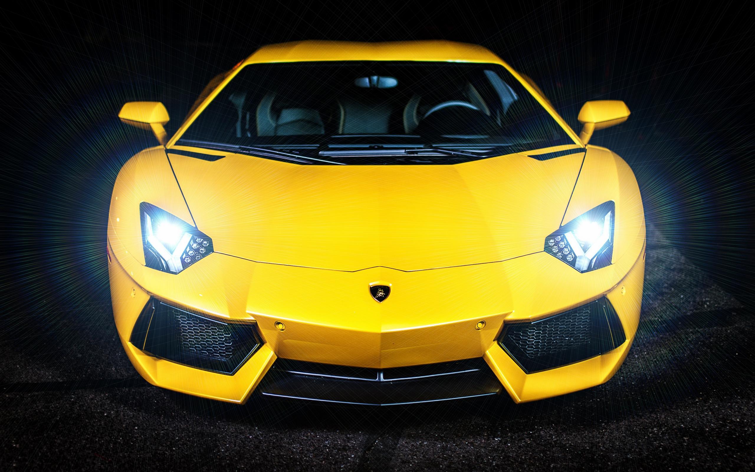 Wallpaper Yellow car Lamborghini Murcielago, front view
