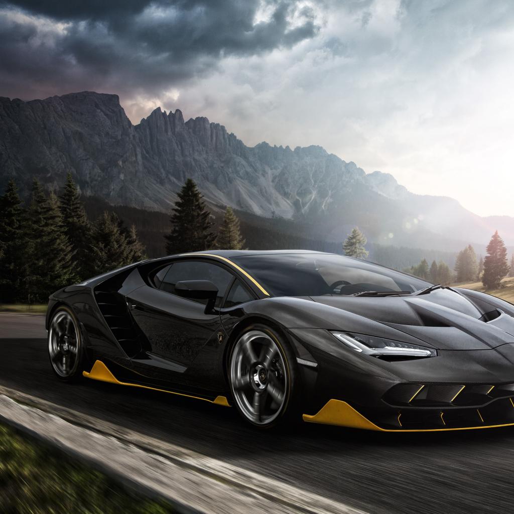 Wallpaper Black sports car Lamborghini Centenario, 2018 on the track