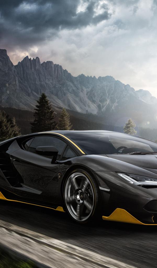Wallpaper Black sports car Lamborghini Centenario, 2018 on the track
