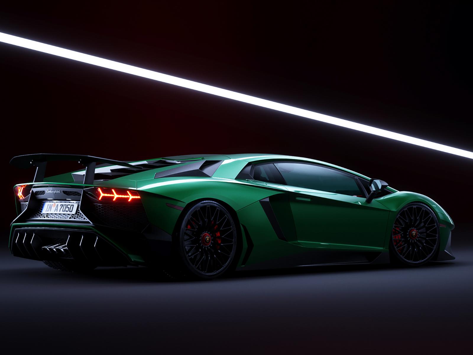 Wallpaper Green sports car Lamborghini Aventador SV rear view