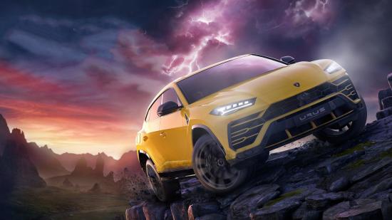 Wallpaper Yellow Lamborghini Urus SUV in the mountains