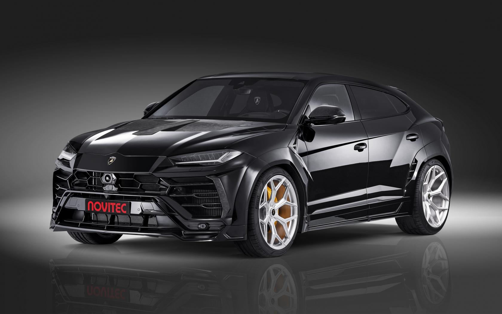 Wallpaper Black Lamborghini Urus Esteso 2019 on a gray background
