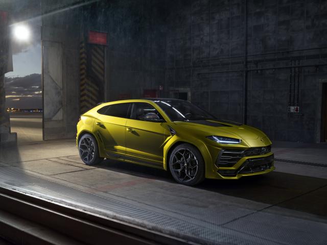 Wallpaper New 2019 Lamborghini Urus Esteso car in the hangar