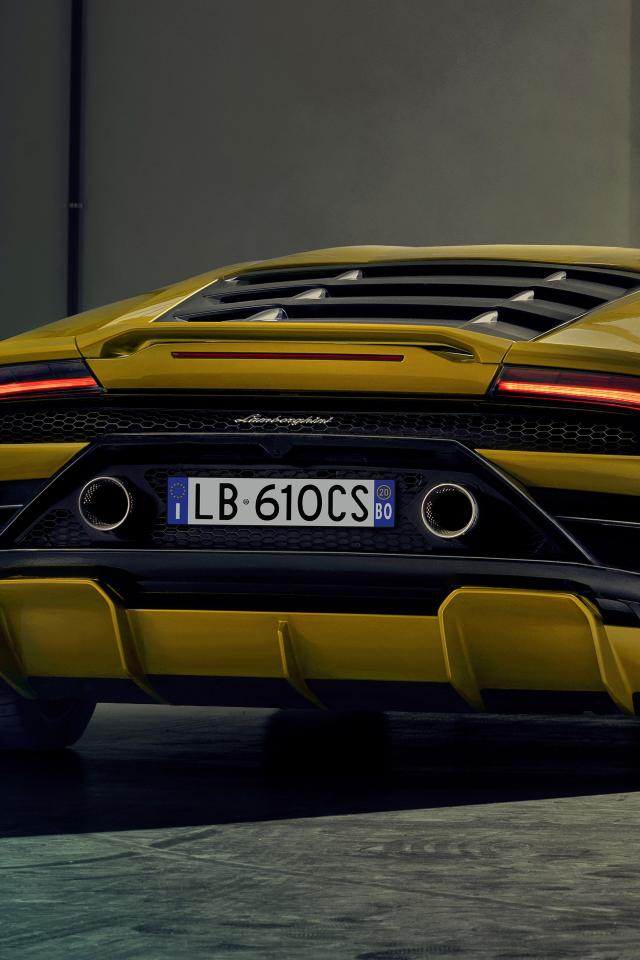 Wallpaper 2020 yellow sports Lamborghini Huracan EVO RWD rear view