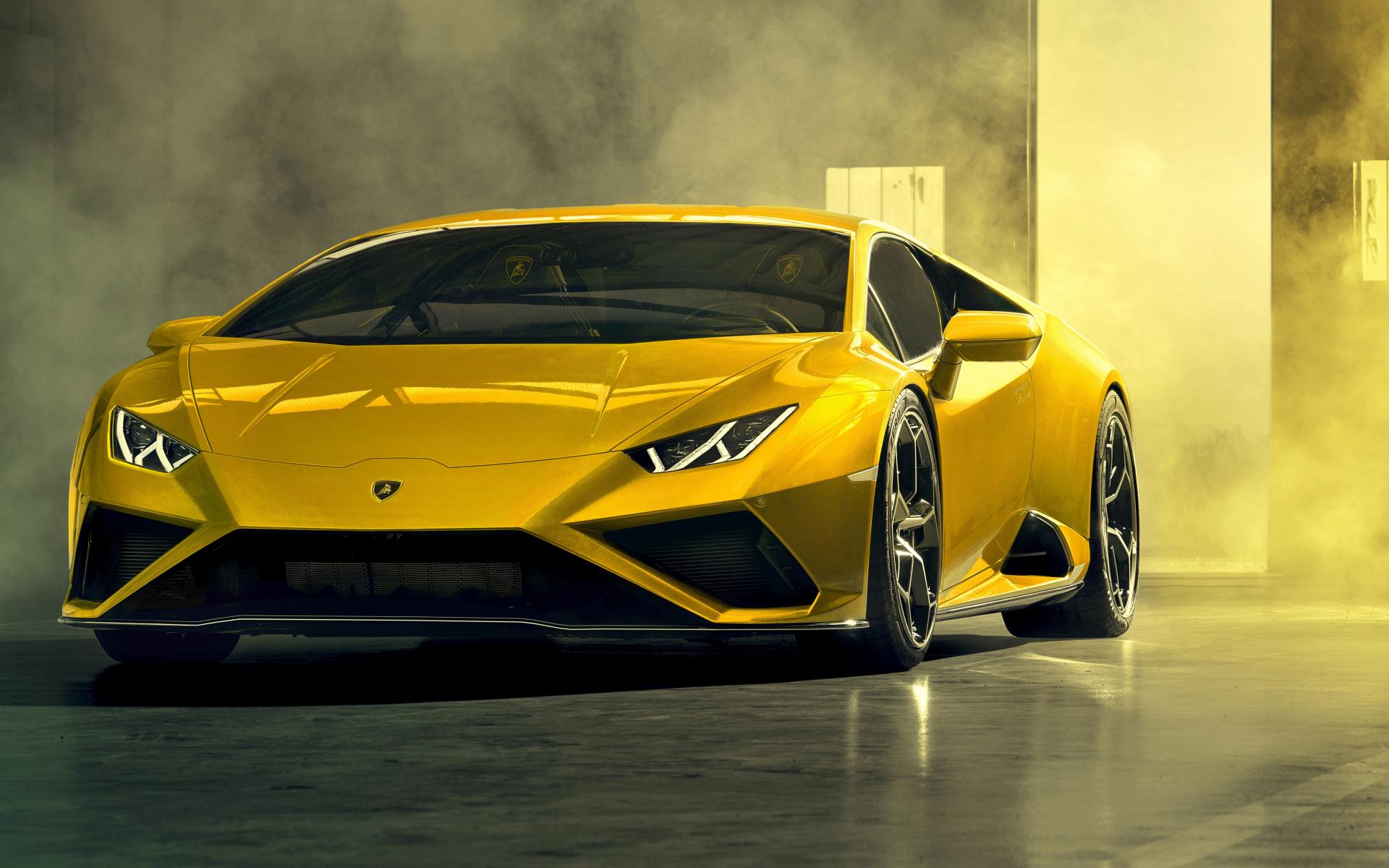 Wallpaper Driving a 2020 Lamborghini Huracan EVO RWD in a garage