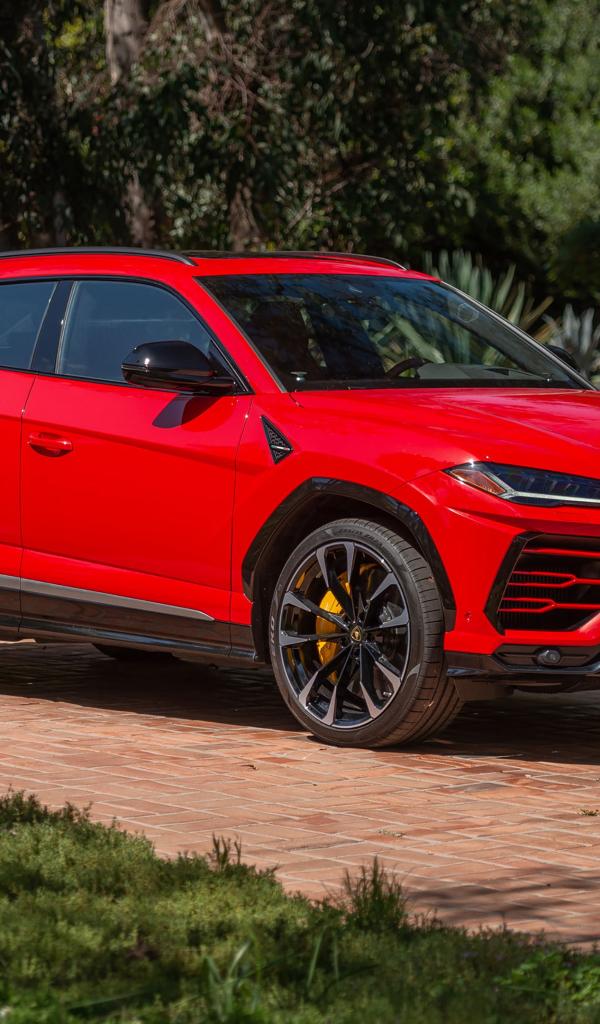 Wallpaper Red Lamborghini Urus Shiny in the park