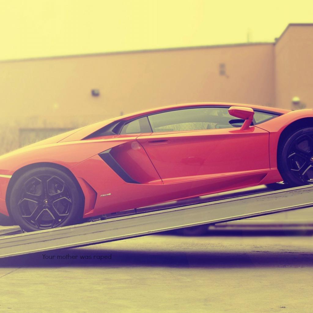 Wallpaper Red Lamborghini Aventador is loaded into a truck