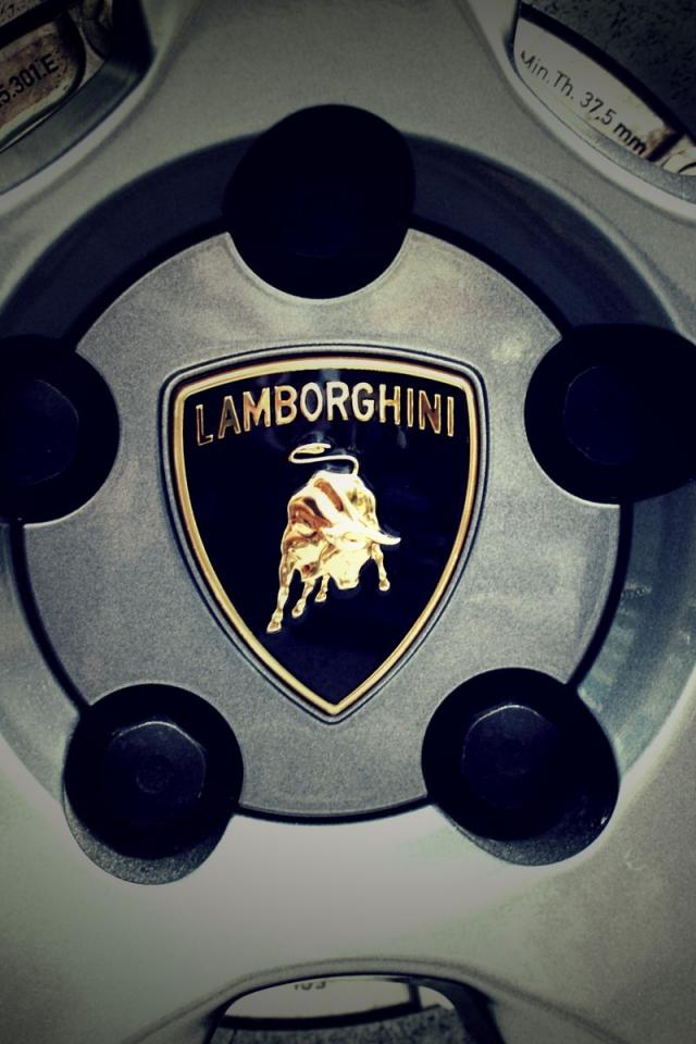 Wallpaper Lamborghini logo on wheel