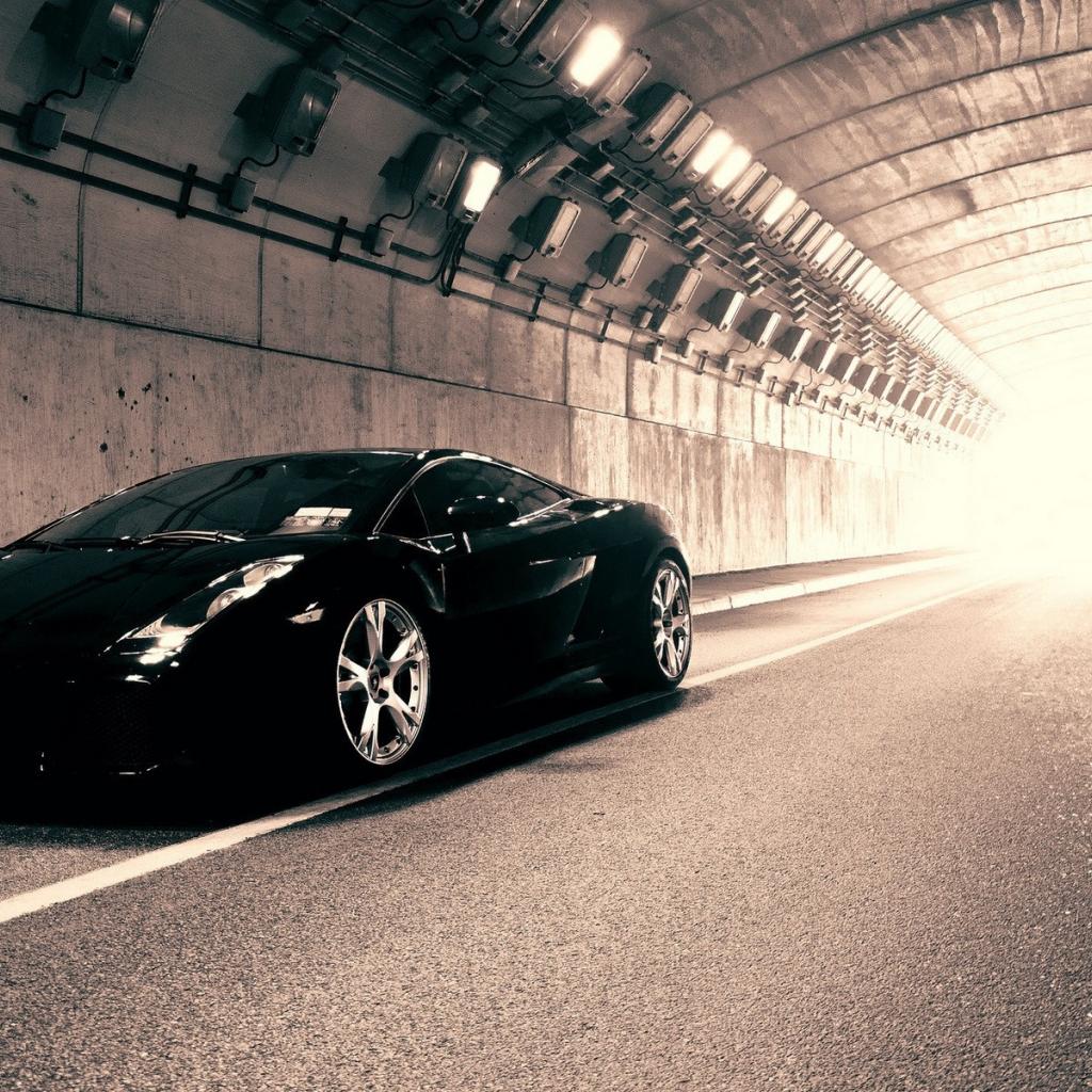 Wallpaper Black Lamborghini in the tunnel