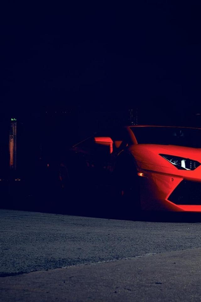 Wallpaper Red Lamborghini in the dark