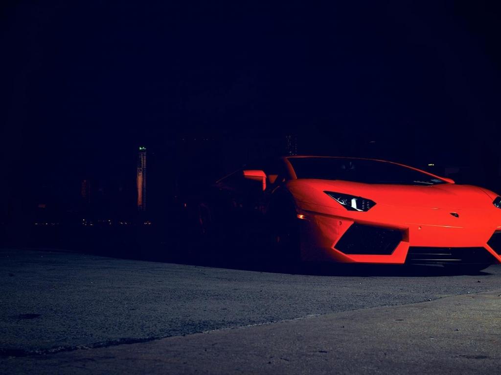 Wallpaper Red Lamborghini in the dark