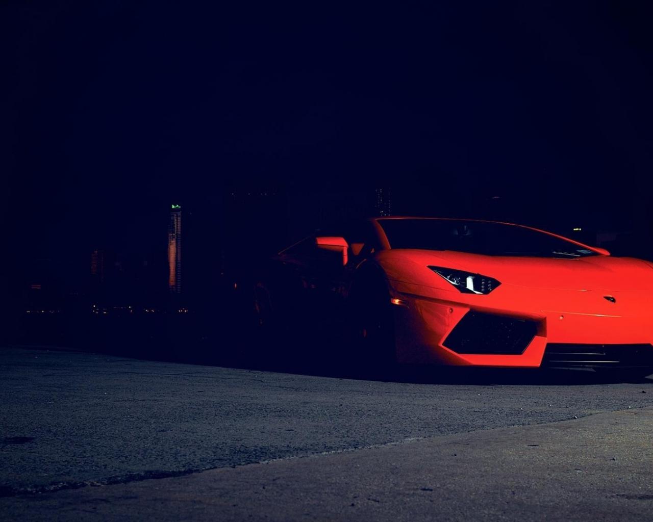 Wallpaper Red Lamborghini in the dark
