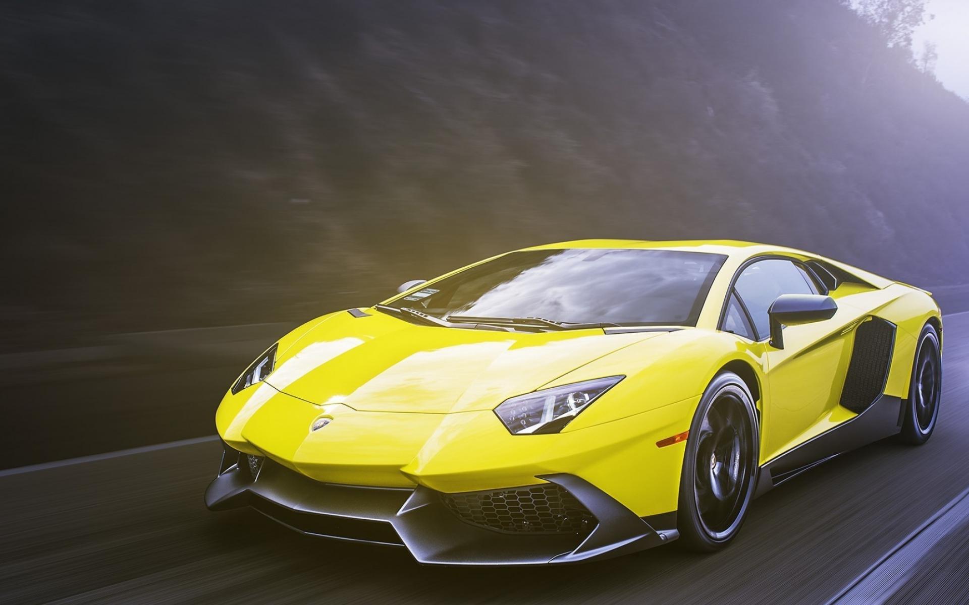 Wallpaper Bright yellow Lamborghini on the highway