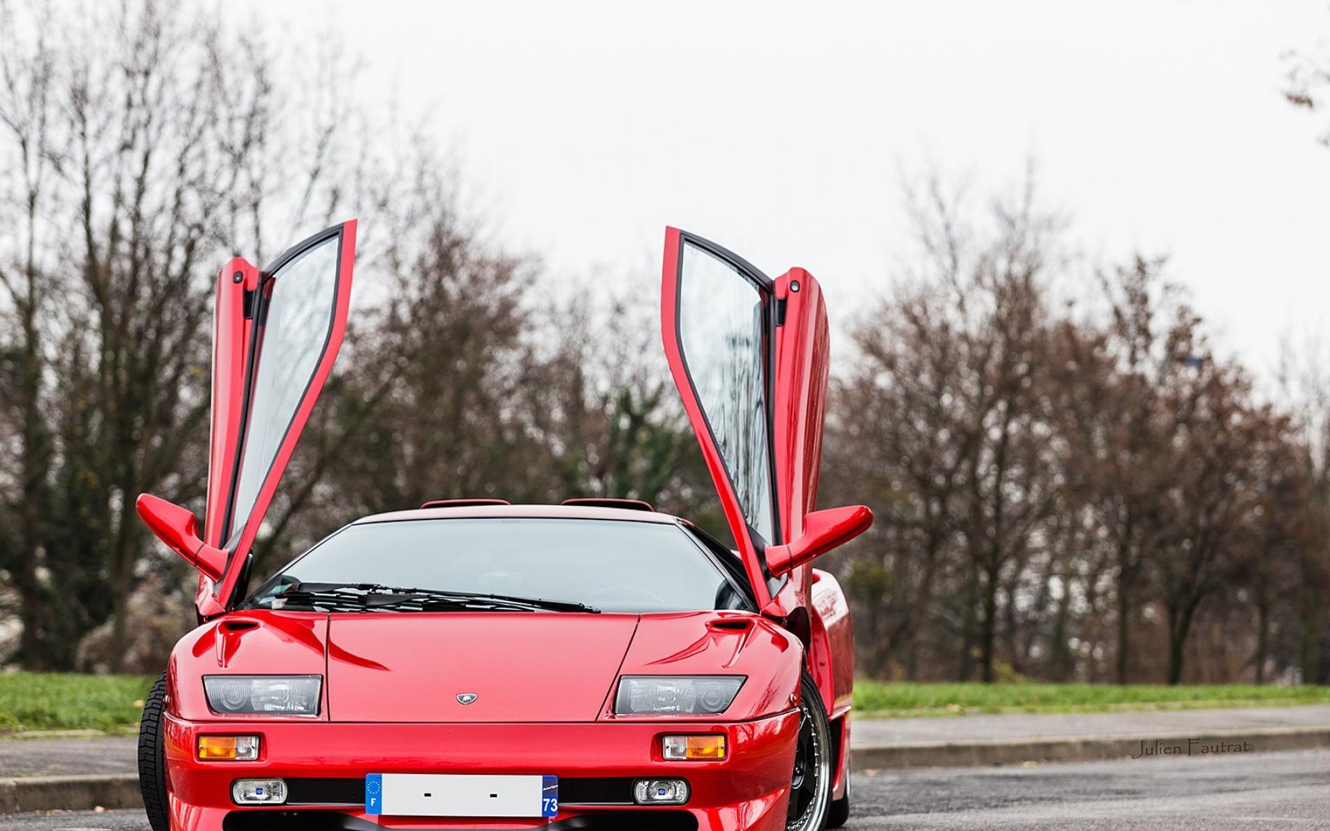 Wallpaper Diablo Red Lamborigini with open doors