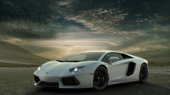 Wallpaper White Lamborghini in the desert against the sky