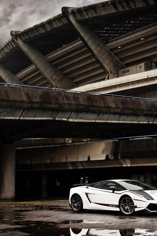 Wallpaper White Lamborghini at the stadium