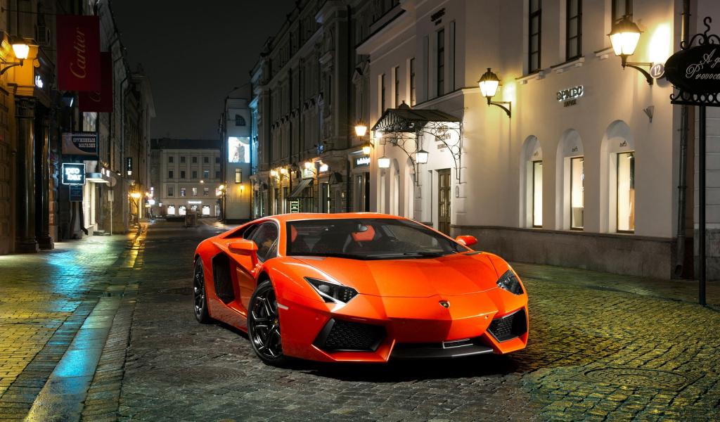 Wallpaper Lamborghini Aventador in the city