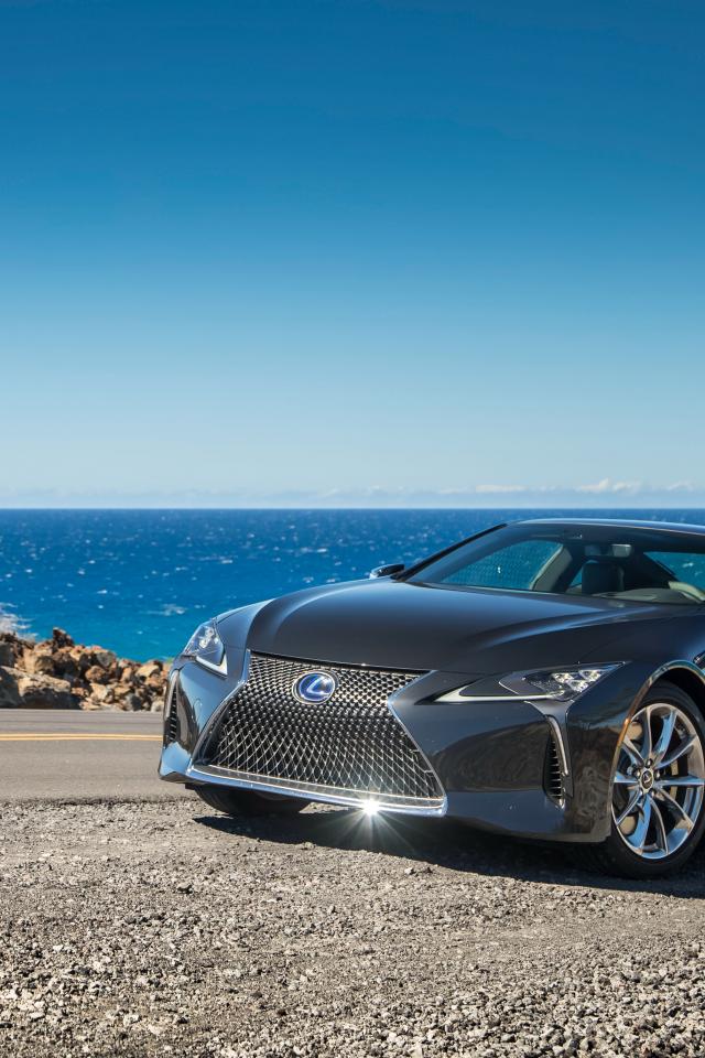 Wallpaper Brilliant silver Lexus LC 500 on the background of the ocean