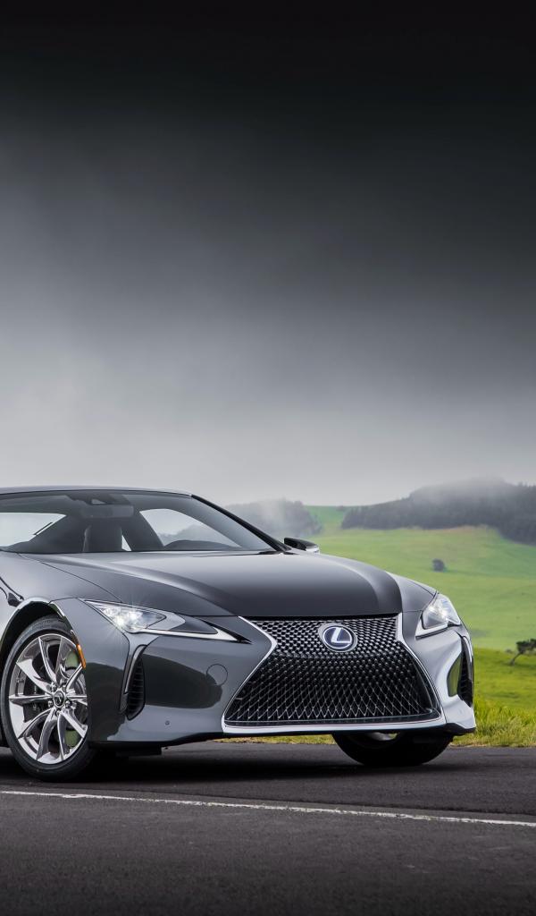 Wallpaper Silver car Lexus LC 500h, 2018 under a stormy sky