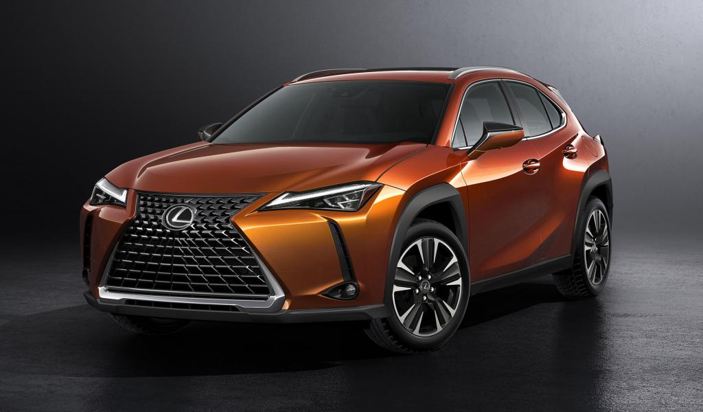 Wallpaper Orange car Lexus UX, 2019 on a gray background