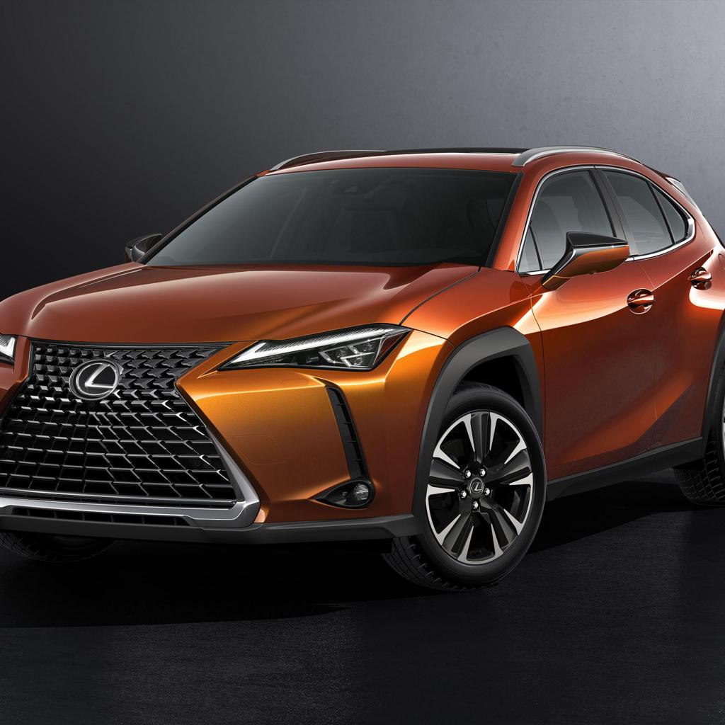 Wallpaper Orange car Lexus UX, 2019 on a gray background