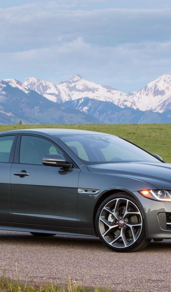 Wallpaper Silver car Jaguar XF on the background of the ocean