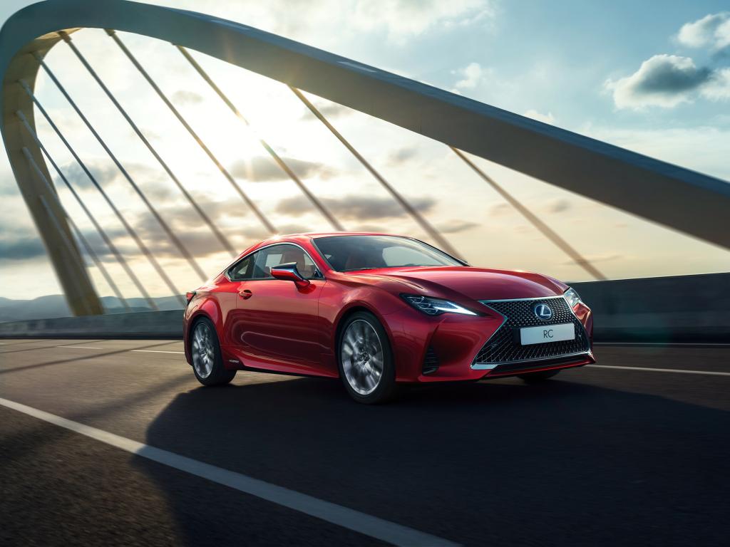 Wallpaper Red 2018 Lexus RC car on the bridge