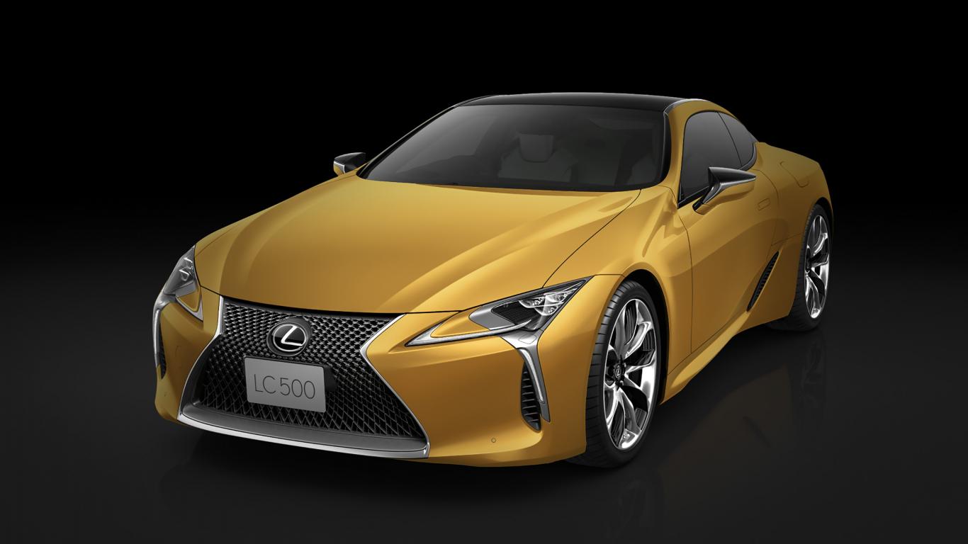 Wallpaper Orange 2018 Lexus LC 500 on a black background
