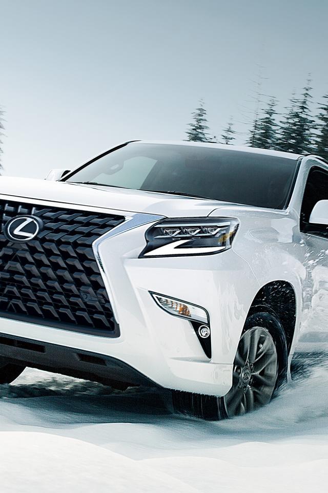 Wallpaper White SUV Lexus GX 460 rides in the snow