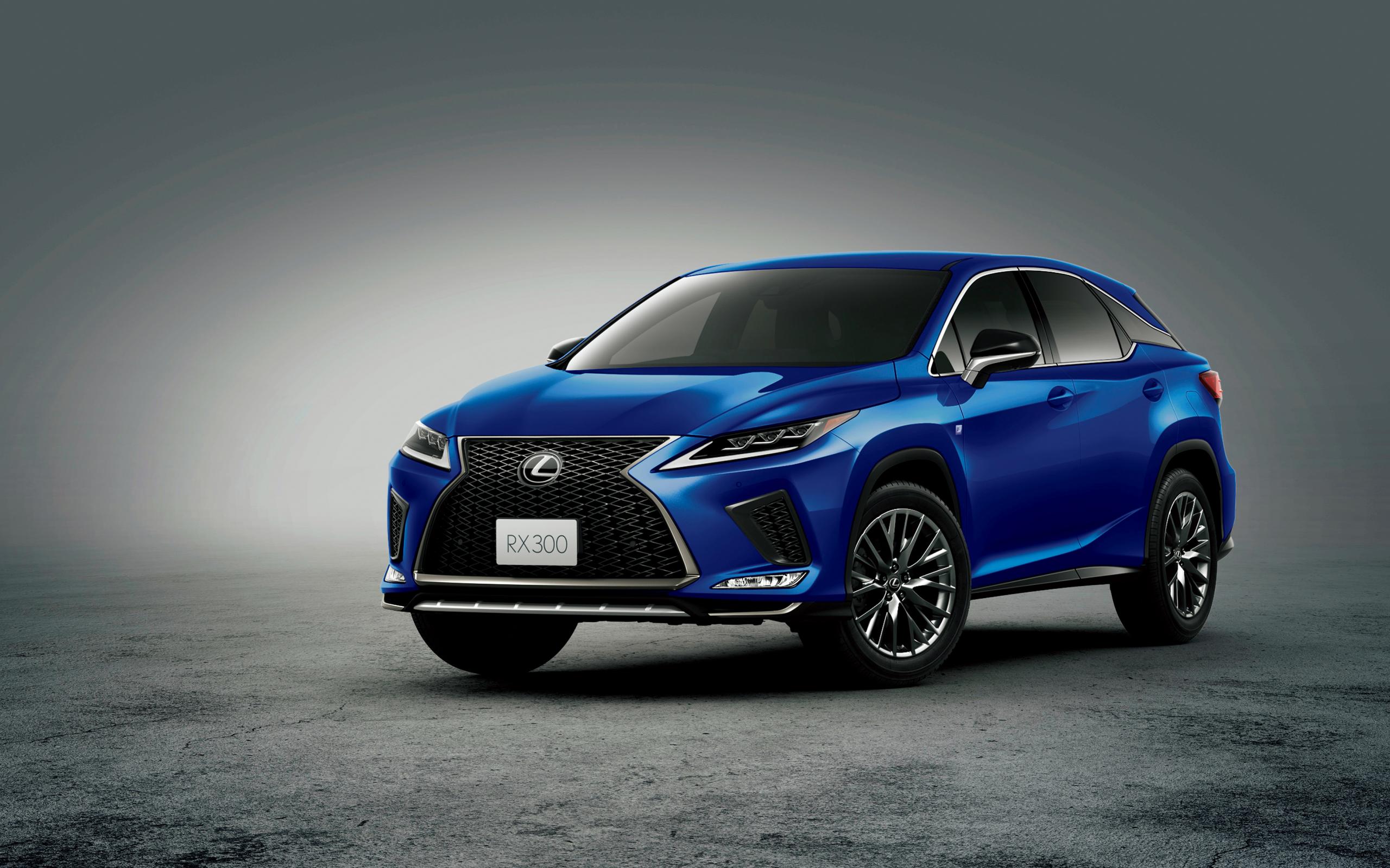 Wallpaper Blue car Lexus RX 300 F SPORT 2019 on a gray background