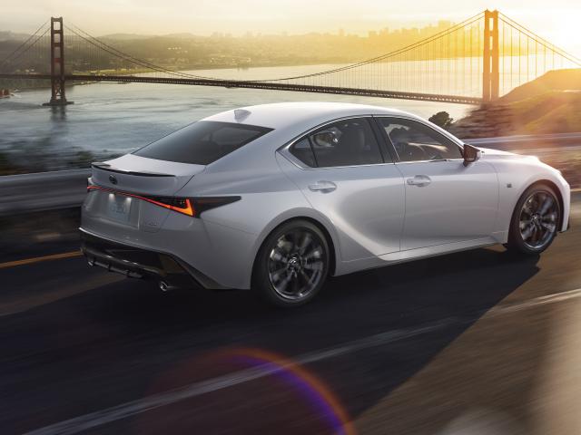 Wallpaper White Lexus IS 350 F SPORT 2021 on the road by the ocean