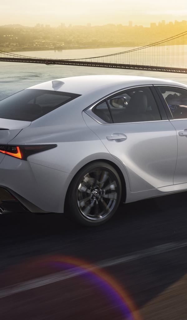 Wallpaper White Lexus IS 350 F SPORT 2021 on the road by the ocean