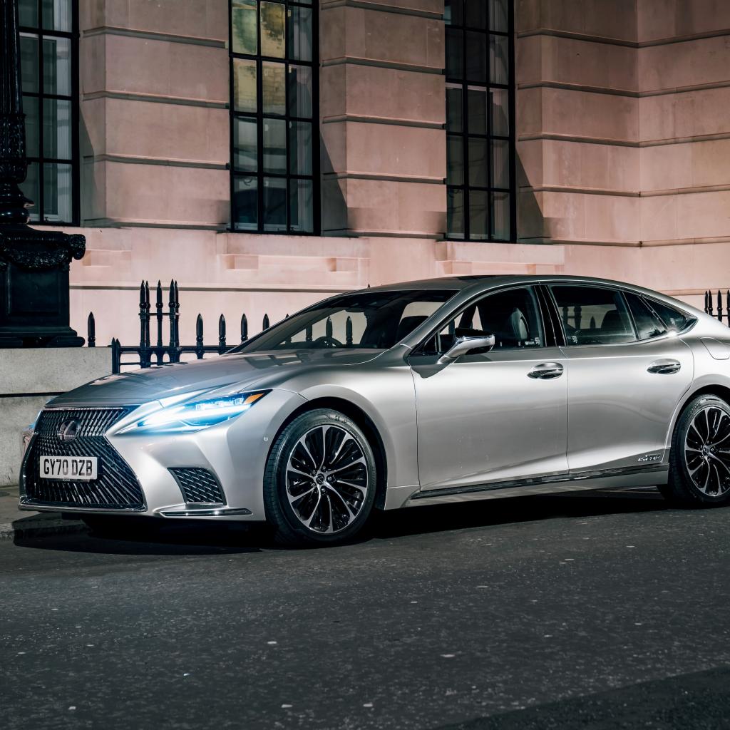 Wallpaper 2021 Lexus LS 500h silver with headlights on