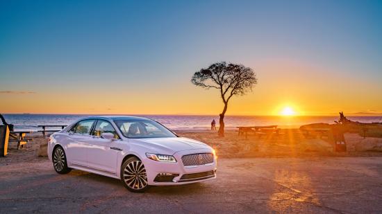 Wallpaper White Lincoln Continental 2017 on the background of sunset