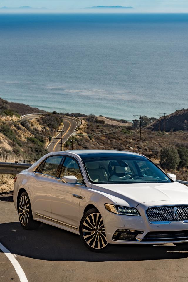 Wallpaper White car Lincoln Continental, 2017 on the mountain road