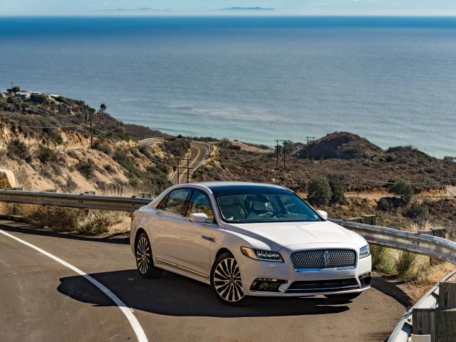 Wallpaper White car Lincoln Continental, 2017 on the mountain road