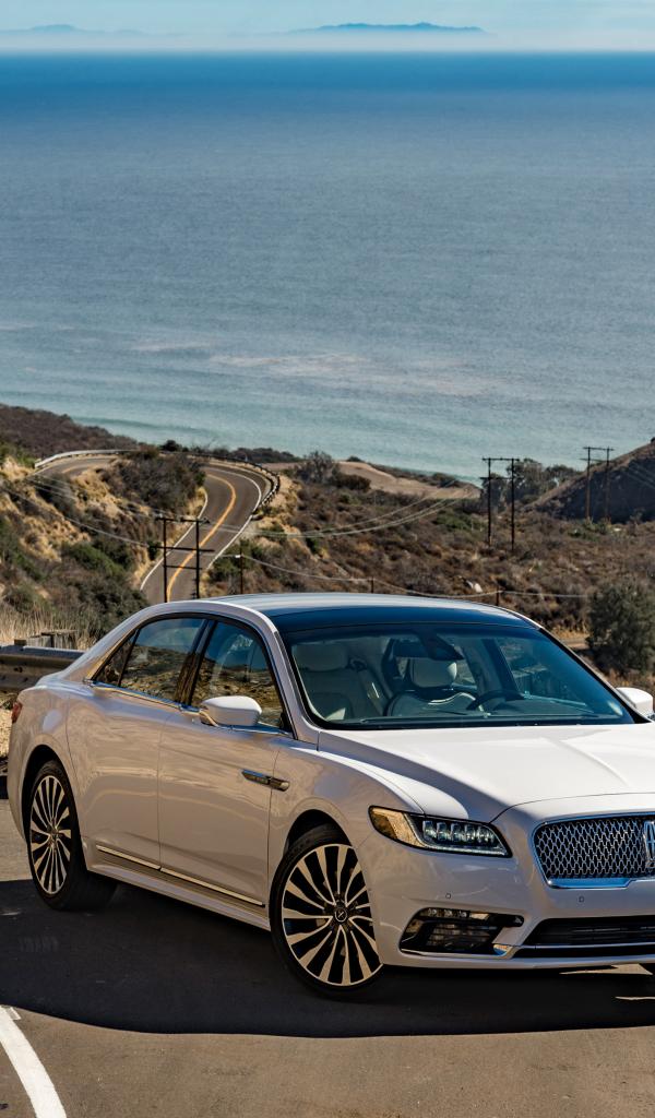 Wallpaper White car Lincoln Continental, 2017 on the mountain road