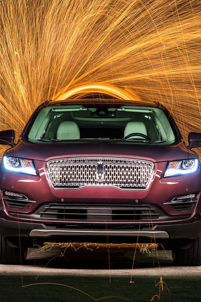 Wallpaper SUV Lincoln MKC, 2019 on the background of fireworks