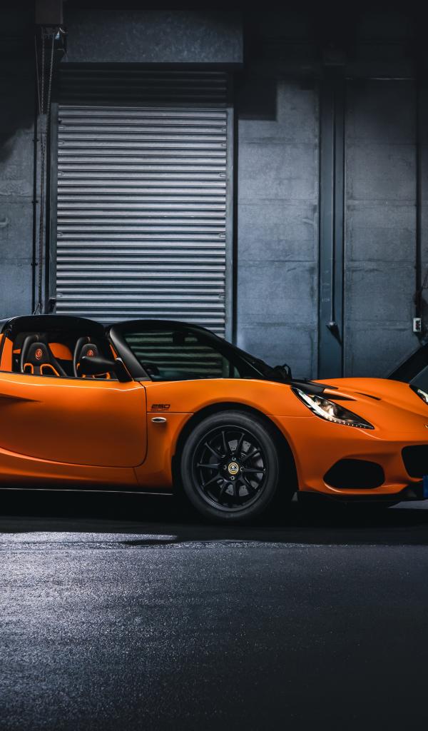 Wallpaper Orange Lotus Elise Cup 250 sports car in the garage
