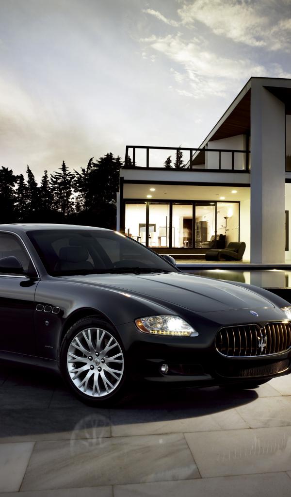 » Wallpaper Black car Maserati Quattroporte at the big house