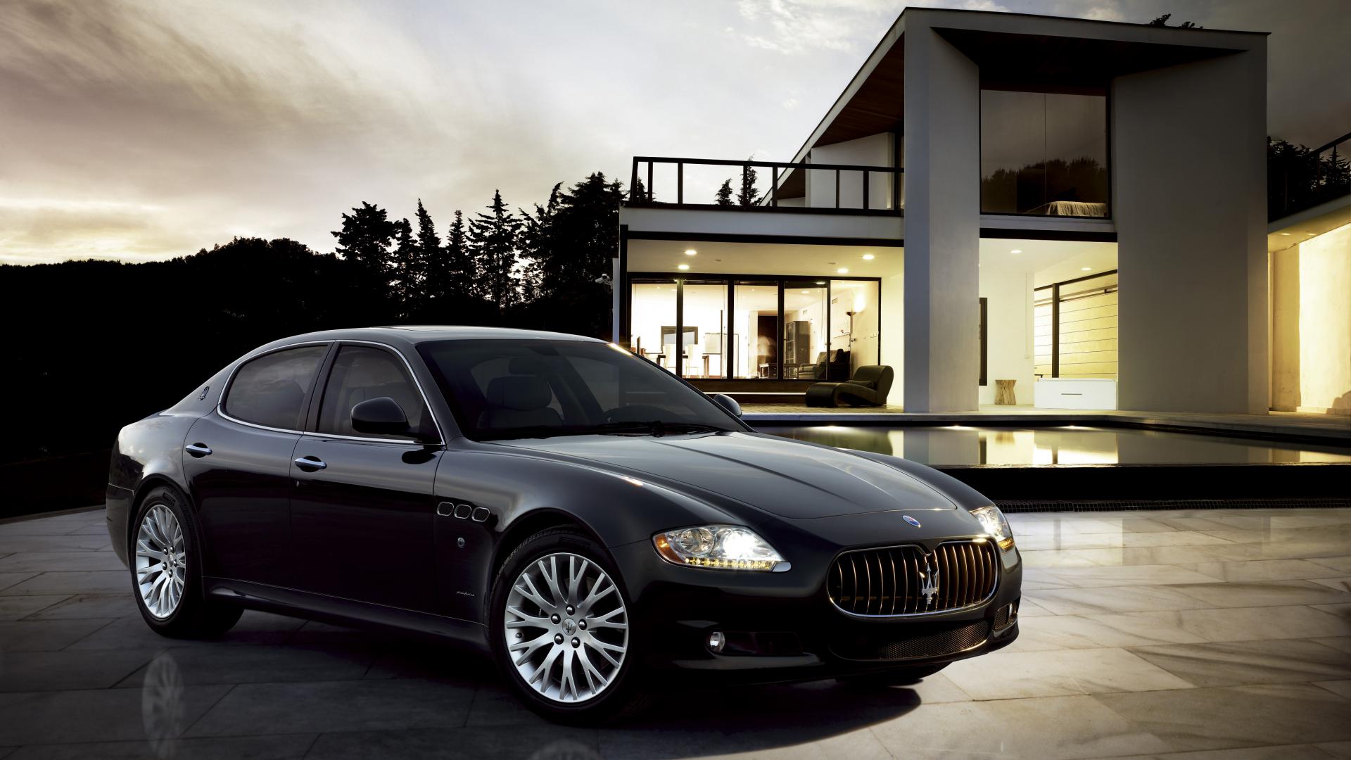 » Wallpaper Black car Maserati Quattroporte at the big house