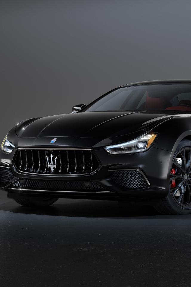 Wallpaper Black car Maserati Ghibli S Q4, 2020 on a gray background