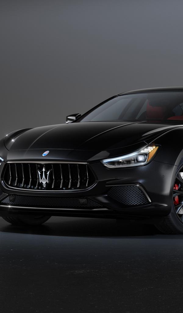 Wallpaper Black car Maserati Ghibli S Q4, 2020 on a gray background