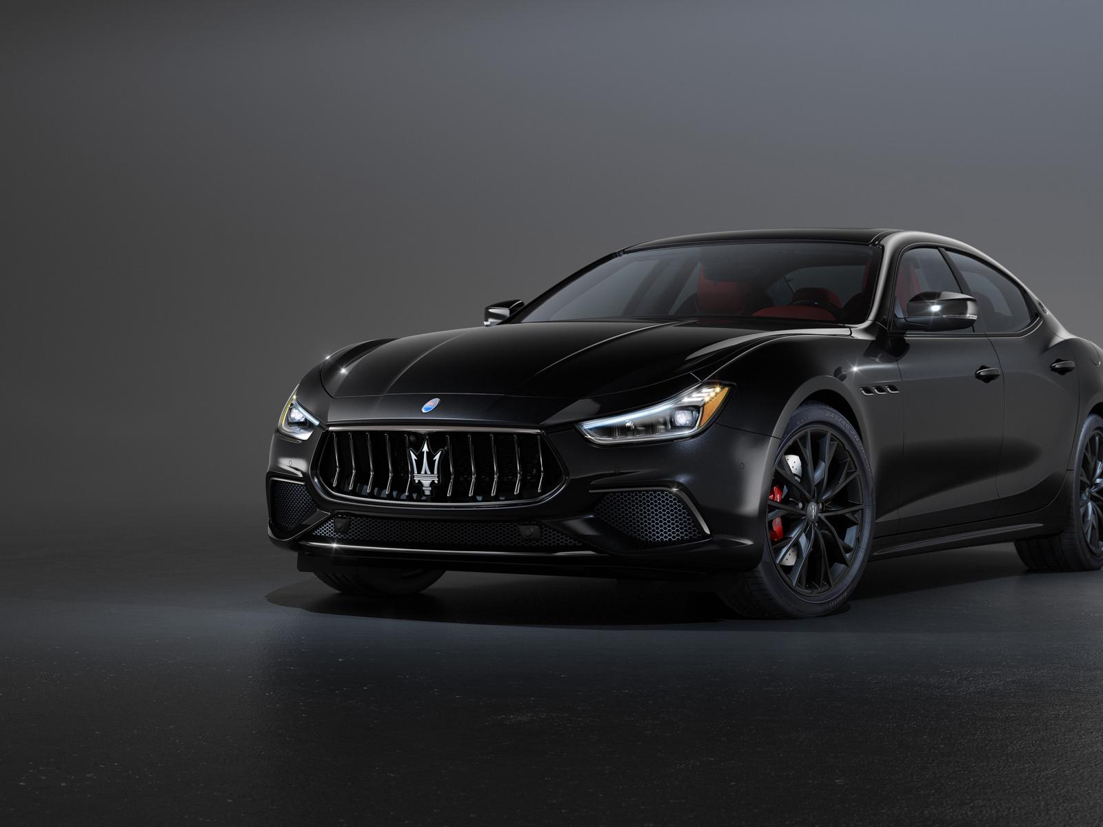 Wallpaper Black car Maserati Ghibli S Q4, 2020 on a gray background