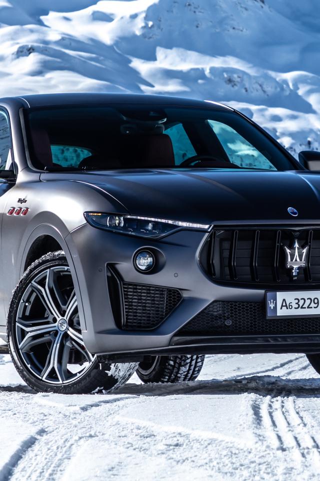 Wallpaper Silver car Maserati Levante Trofeo in the mountains