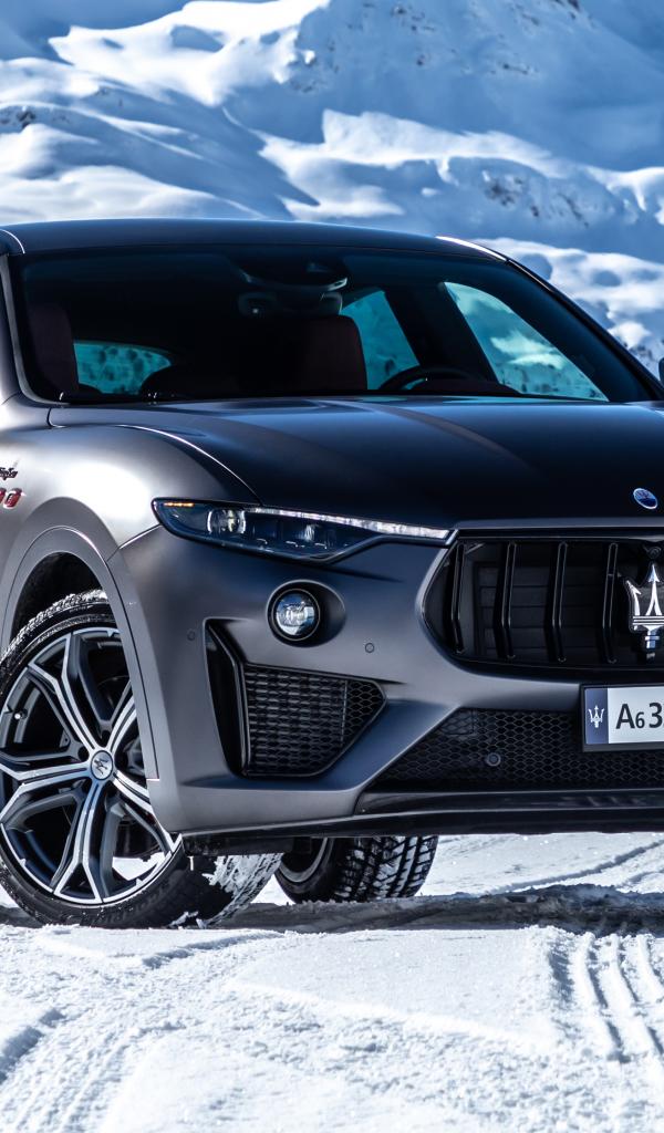 Wallpaper Silver car Maserati Levante Trofeo in the mountains