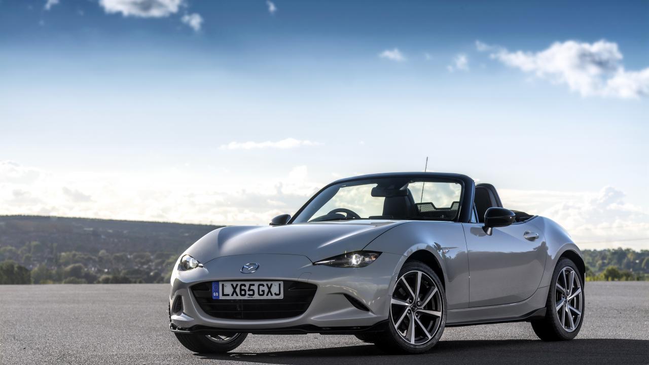 Wallpaper Mazda MX-5 silver cabriolet on the background of a beautiful sky