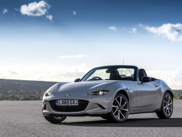 Wallpaper Mazda MX-5 silver cabriolet on the background of a beautiful sky