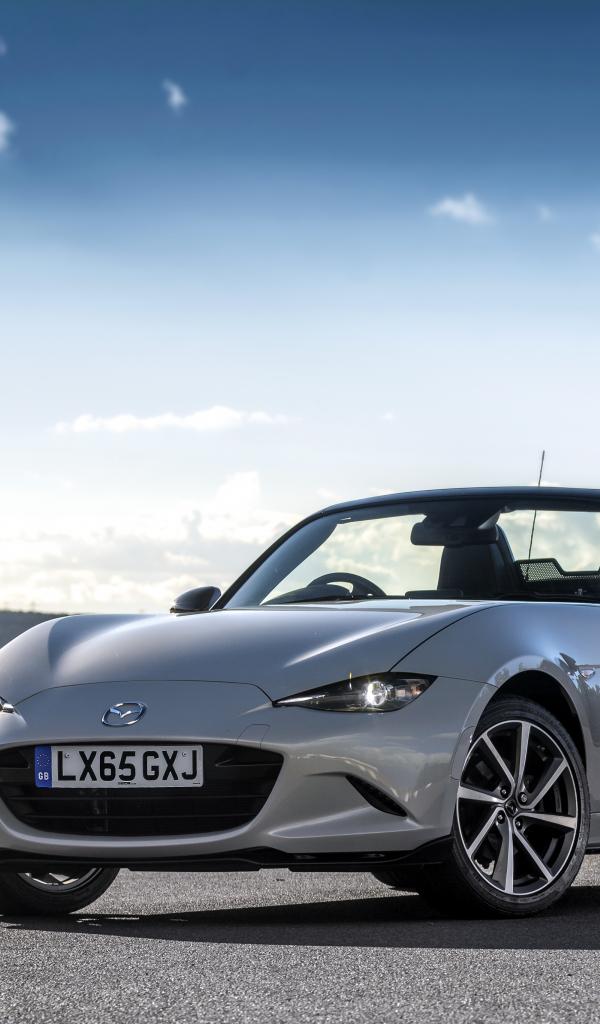 Wallpaper Mazda MX-5 silver cabriolet on the background of a beautiful sky