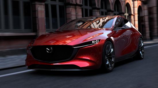 Wallpaper Red car Mazda Kai in the streets of the city